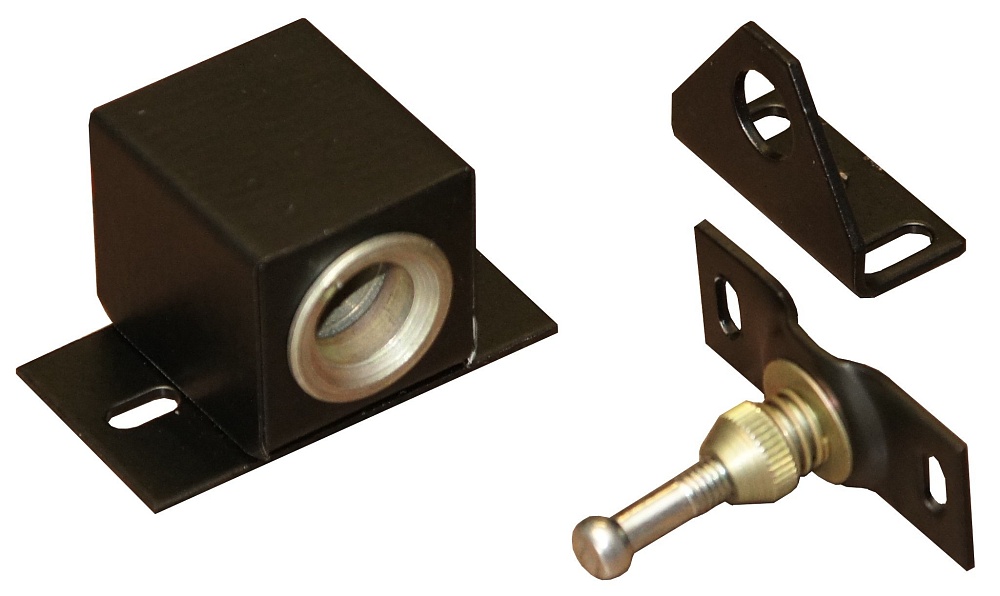 Замок электромеханический малогабаритный, усилие удержания ригеля 300 кг, нормально закрытый, напряжение питания 24 В/0,05 А, -30...+50 °С, цвет - черный