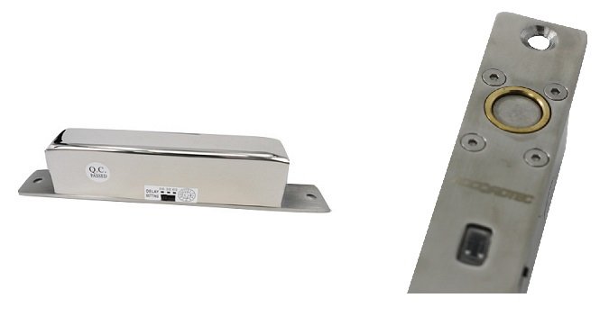 Соленоидный замок со встроенным датчиком состояния замка, врезной, нормально-открытый, питание 12-24 В, двухцветная светодиодная индикация, потребляемый ток в режиме ожидания 150 мА, при пуске 1 А, нержавеющая сталь, -10…+50 °С, 175х25х35 мм, 640 г