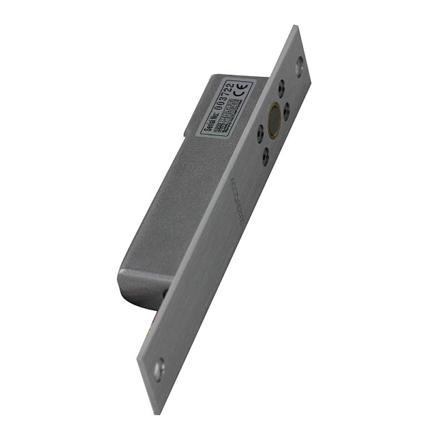 Соленоидный замок со встроенным датчиком состояния замка, врезной, нормально-открытый, питание 12-24 В, потребляемый ток в режиме ожидания 180 мА, при пуске 1 А, алюминиевый сплав, -10…+50 °С, 204x35x38 мм, 800 г