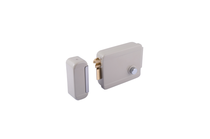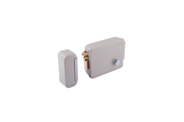 Электромеханический  накладной замок, ключ снаружи, кнопка изнутри, для дверей всех типов, DC 12В, 3А, материал - нержавеющая сталь (порошковая окраска), от -40° до 50°С, 148х107х55 мм.