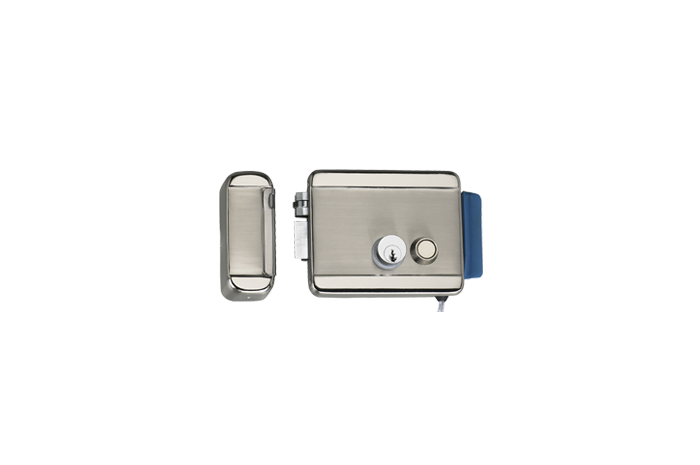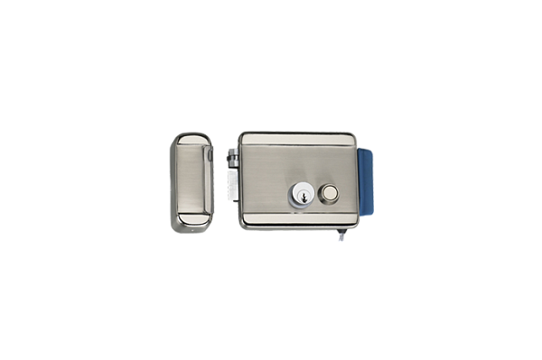 Электромеханический накладной замок, ключ снаружи, ключ и кнопка изнутри, для дверей всех типов, DC 12В, 3А, материал - нерж.сталь, от -40° до 50°С, 148х107х60 мм.