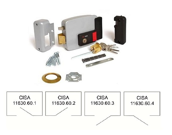 Накладной, снаружи ключ, изнутри ключ + кнопка. Для дверей, открывающихся наружу петли справа, цилиндр + три ключа, кнопка выхода, блокируемая ключом в положении "открыто", "закрыто"