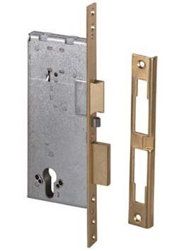 Для деревянных дверей. Латунные лицевая пластина и ответная планка. Напряжение 12 В переменного тока. Двухоборотный механизм и защелка, ригель и защелка срабатывают от электросигнала, расстояние от торца двери до середины цилиндра 50 мм. (цилиндр в комплект поставки НЕ входит)