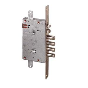 Для бронированных дверей, Сувального типа, три точки запирания, Отделка из цинка и никеля. Электромеханическая защелка и четырехоборотный многоригельный механизм, Напряжение: 12 В (переменного тока)