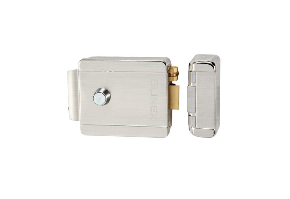 Электромеханический накладной замок, цилиндр одинарный, кнопка выхода на корпусе, материал - сталь с нержавеющим покрытием, 9-14 В,  1,5-3А, -40°+55°С, 148х107х55 мм, 1250г.