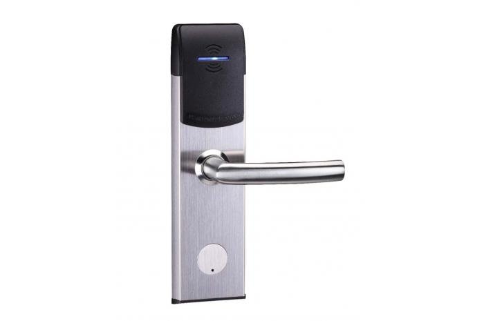 Электромеханический врезной замок со встроенным контроллером и считывателем карт MIFARE, емкость памяти: 251 карта, питание 4 элемента AA 1.5В, открытие с помощью ключа или карты, память на 992 события, ресурс микромотора на 600 000 открываний, нержавеющая сталь, 287х70х17 мм.