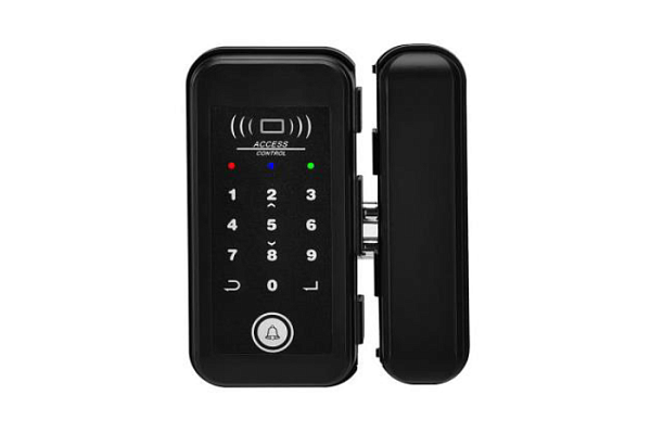 Накладной замок со встроенной сенсорной кодонаборной панелью и считывателем карт MIFARE, предназначен для установки на стеклянные двери и рамы, 4.5-6.5В (4 батарейки типа АА), размеры замка: 160x80x75мм, размеры ответной части: 160x43x75мм, ABS-пластик.