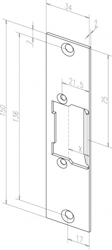 Короткая запорная планка с вырезом под язычок; универсальная; 150х34 мм; толщ. 2 мм; цинк.