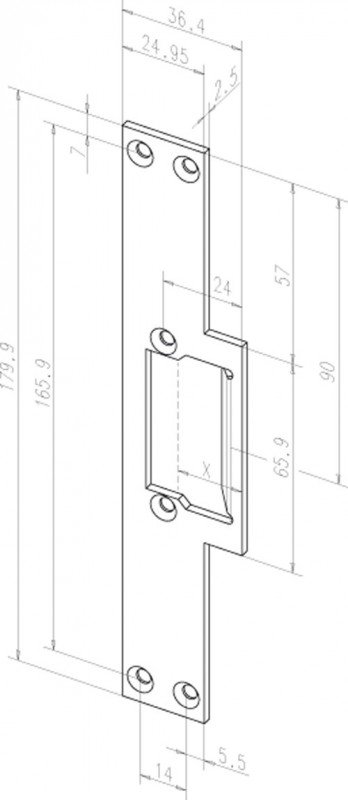 Короткая запорная планка с вырезом под язычок; универсальная; 180х36 мм; толщ. 2,5 мм; цинк