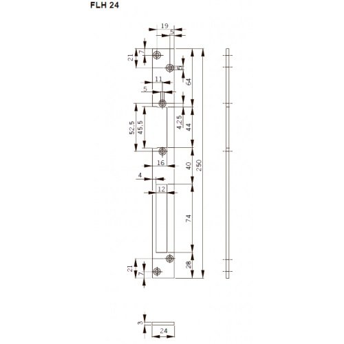 Планка плоская, нерж. сталь, для дерев. дверей, отв. под язык, для серий Smoke, Basic-S , Basic, Fire 447.