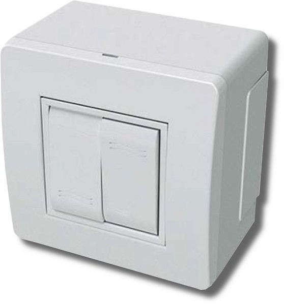 Коробка в сборе с 2-мя выключателями, 2 модуля, номинальное напряжение 250 В, номинальный ток 16 А, цвет белый