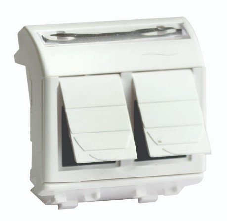 Розетка компьютерная RJ-45 экранированная серии Brava с 2-мя разъёмами, 2 модуля, Hyperline, cat.5e, установочный размер 43х43 мм, цвет слоновая кость