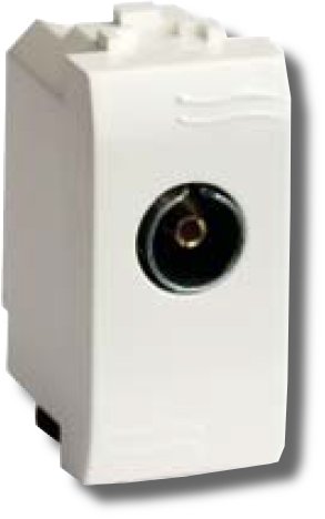 Розетка серии "BRAVA" телевизионная, проходная, без согласующего сопротивления, диапазон рабочих частот 40...2200 МГц, коэффициент затухания менее 10 дБ, габаритные размеры 43х21,5, цвет белый
