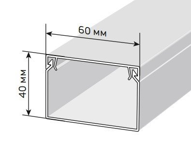 Кабель-канал с двойным замком самозатухающий ПВХ, 60х40х2000 мм, площадь полезного сечения 2047 кв.мм, IP40, t-раб.-15...+60°C