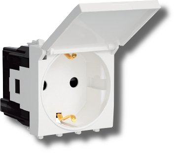 Розетка силовая с крышкой штекерная с заземлением со шторками серии Avanti, IP44, номинальное напряжение 250 В, номинальный ток 16 А, отверстия под кабель 3 мм, установочный размер 43х43 мм, цвет ванильная дымка
