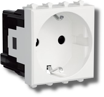 Розетка силовая штекерная с заземлением со шторками серии Avanti, IP20, номинальное напряжение 250 В, номинальный ток 16 А, отверстия под кабель 3 мм, установочный размер 43х43 мм, цвет красный квадрат