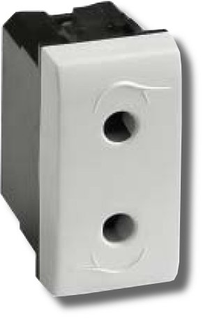 Силовая электрическая розетка серии "BRAVA", штекерная, без заземления, без шторок, номинальное напряжение 250 В, номинальный ток 16 А, отверстия под кабель 3 мм, габаритные размеры 43х21,5 мм, цвет белый