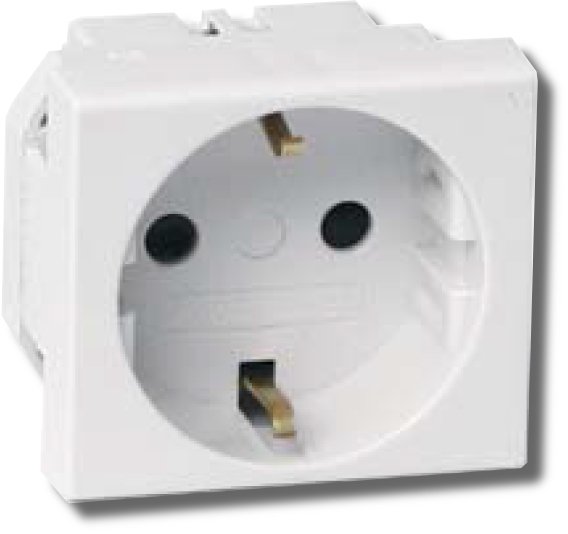 Силовая электрическая розетка серии "Brava", штекерная, с заземлением и со шторками, номинальное напряжение 250 В, номинальный ток 16 А, отверстия под кабель 3 мм, габаритные размеры 43х43 мм, цвет белый