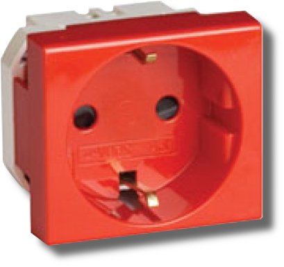 Силовая электрическая розетка серии "Brava", штекерная, с заземлением и со шторками, номинальное напряжение 250 В, номинальный ток 16 А, отверстия под кабель 3 мм, габаритные размеры 43х43 мм, цвет красный