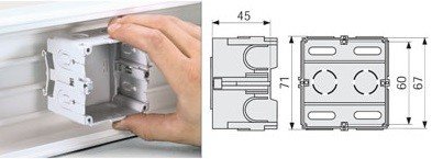 Коробка под розетку 60мм в короб TA-GN; IP40, t-раб.-5...+60°С, 71x71x45 мм