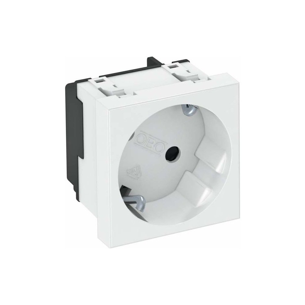 Розетка одинарная 2К+3 силовая, SCHUKO, для подключения вилки (штекера) под углом 33°, с автоматически закрывающимися защитными шторками, I-раб. 16 А, U-раб. 250 В, размер 45х45 мм - 1 модуль Modul45, белая