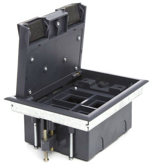 Люк напольный для розеток 4 поста (45х45 мм). Сталь. В комплекте: люк, суппорт (4 поста 45х45) - 1 шт., коробка с крышкой - 1 шт.