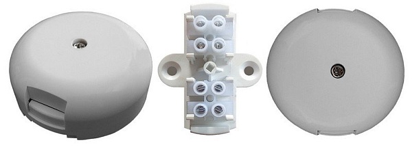Коробка коммутационная с клеммной колодкой на 4 пары контактов, дополнительное крепление крышки винтом; IP40, t-раб.-60...+50°С, 55х19 мм