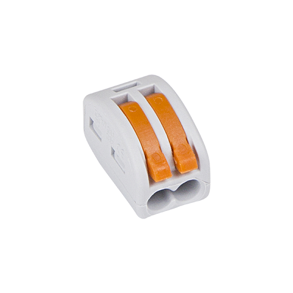 Клеммная колодка 2-х контактная серого цвета с нажимным рычагом для медных одножильных и многожильных проводников сечением 2x0,08 – 4 мм2 (одножильный провод), 2x0.08-2.5 мм² (многожильный провод). Рабочее напряжение 380 В, ток 32 А. Рабочая температура: –40...+85 ºC