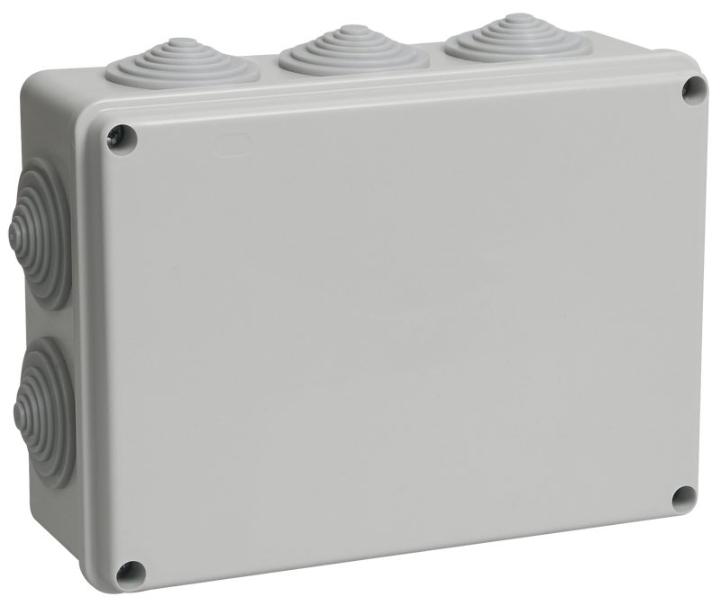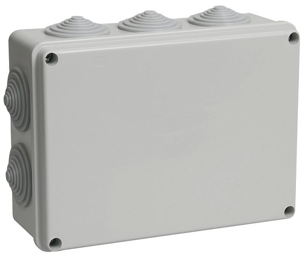 Коробка распаячная для открытой проводки, 10 гермоввода, 190х140х70 мм, IP55, tраб -25…+40С°, цвет серый