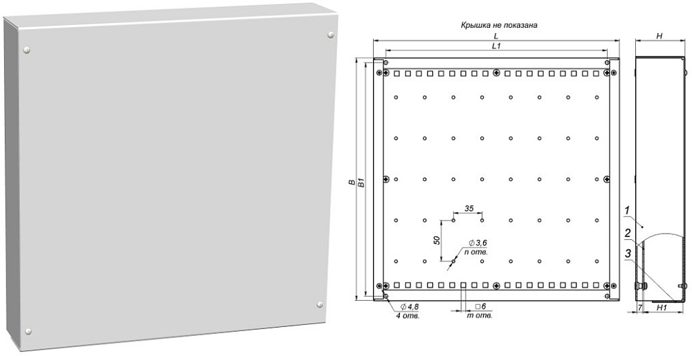 Коробка монтажная внутренняя предназначена для коммутации цепей питания и линий связи, установки различных устройств в помещениях и под навесами. Степень защиты IP10. Материал - сталь. -60°С…+70°C, 300х400х80мм.