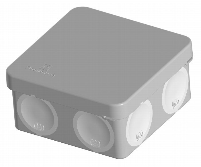 Коробка распределительная безгалогеновая (HF) для прямого монтажа двухкомпонентная (для открытой установки); 8 вводов Ø=20 мм; IP66, t-раб.-45…+60°С; 90х90х45 мм. Цвет - серый