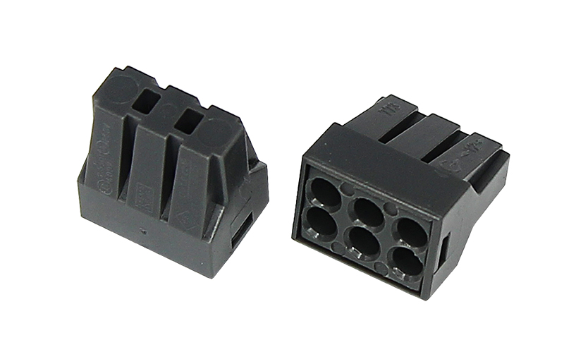 Безвинтовая клемма 6-ти проводная с токопроводящей пастой для соединения одножильных и многожильных проводов, сечением от 1,0 до 2,5 мм². Рабочее напряжение 250 В, ток 24 А. Рабочая температура: –45...+80 ºC