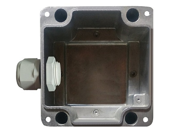Коробка коммутация; 1 кабельный ввод ПКВ20х1,5 (под кабель от 6 до 14 мм ); 90х90х62мм. Корпус из алюминиевого сплава.