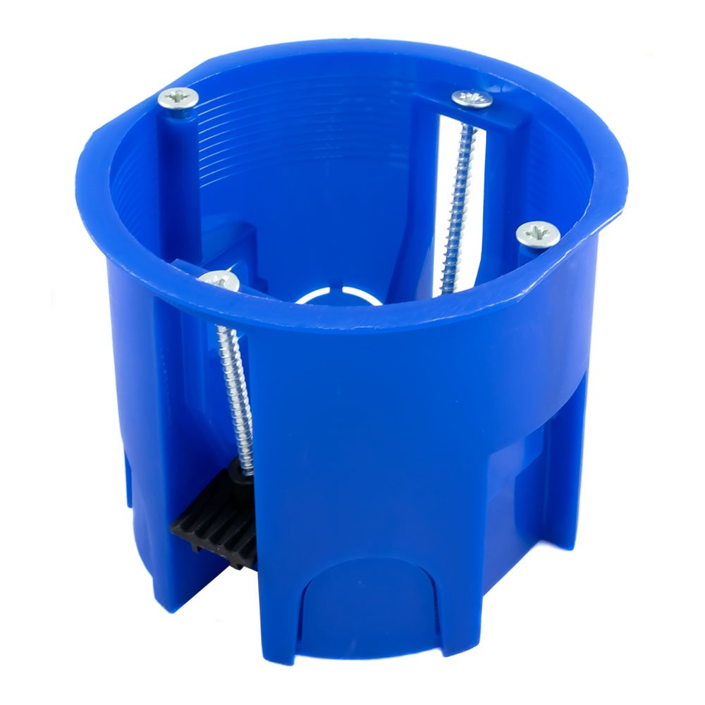 Коробка установочная (подрозетник) безгалогеновая (HF) для гипсокартонных и полых стен; 4 ввода диаметром 20 мм; IP20, t-раб.-25…+40°С; 68х60 мм. Цвет - синий.