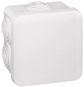 Коробка распаечная пластиковая серии Plexo; устойчивая к атмосферным воздействиям; 9 кабельных вводов для трубы диаметром 20 мм; IP55, 80х80х45 мм