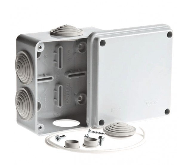 Коробка ответвительная для открытой проводки с 6 кабельными вводами для, 100х100х50 мм, степень защиты IP54, цвет светло-серый