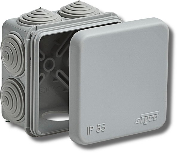 Коробка ответвительная для открытой проводки с 7 кабельными вводами для, 70х70х40 мм, степень защиты IP55, цвет светло-серый