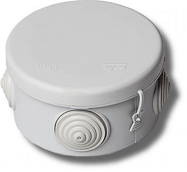 Коробка ответвительная для открытой проводки с 4 кабельными вводами для, D=80 мм, Н=50 мм, степень защиты IP54, цвет белый