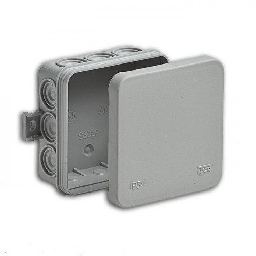 Коробка ответвительная для открытой проводки с 12 кабельными вводами, 85х85х35мм, степень защиты IP54, цвет светло-серый