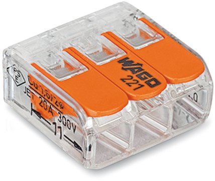 Клеммный разъем многоразовый 3 контактный с рычажком; 0.2-4 мм2; 32 А; 450 В; 105°C.