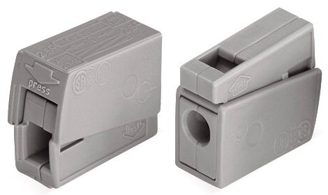 Клемма для светильников, номинальный ток 16 А, номинальное напряжение 400 В, количество контактов 2 шт, размеры ВхДхШ 30,5х20,5х8,5 мм, сечение жилы 0,5 - 2,5 кв.мм, температура эксплуатации: -35…+105С, цвет серый