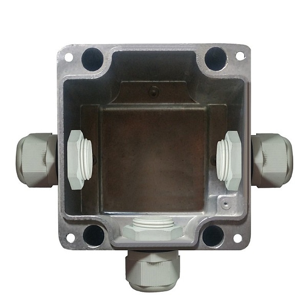 Коробка коммутация; 3 кабельных ввода ПКВ20х1,5 (под кабель от 6 до 14 мм ); 90х90х62мм. Корпус из алюминиевого сплава.