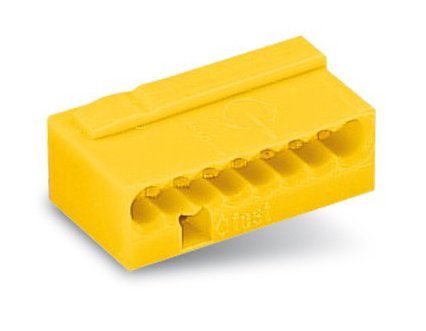 Клемма для распределительных коробок, I-ном.6 А, U-ном.100 В, 8 контакта 0.6..0.8 кв.мм, t-раб.-60…+105°С, 6.8х10х18.4 мм, цвет желтый