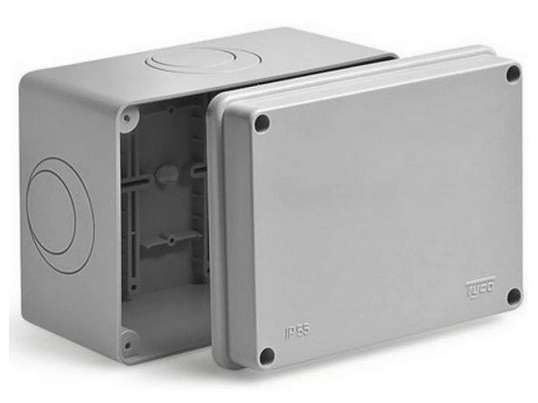 Коробка ответвительная без гермовводов для открытой проводки, 150х110х90мм, степень защиты IP55, цвет серый