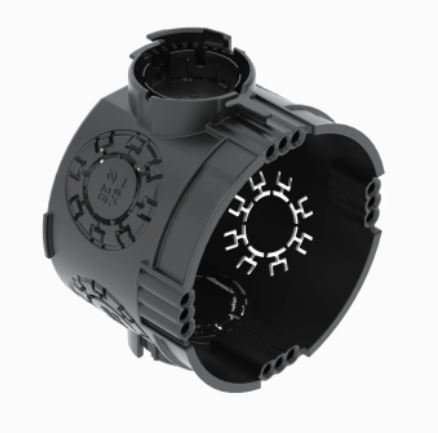 Монтажная коробка для скрытой установки в кирпичную кладку на глубину не менее 46 мм.Резьбовые вкладыши 4 x 3; Соединительный штуцер с возможностью двустороннего соединения с байонетным затвором; 6 комбинированных вводов для труб Ø 20 и 25 мм; 1 ввод до Ø 20 мм в дне