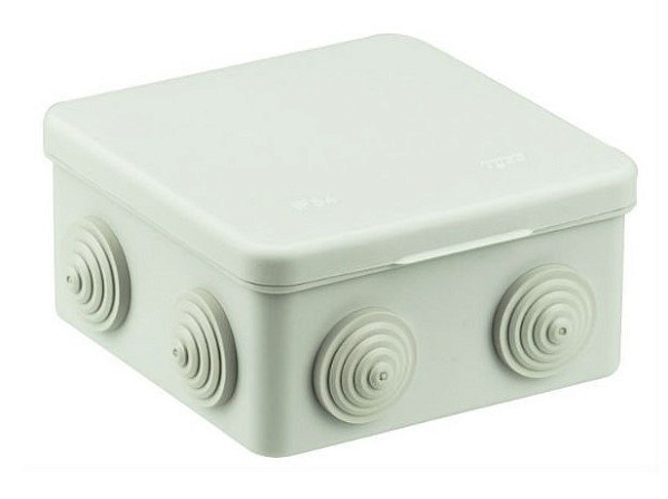 Коробка ответвительная для открытой проводки с 7 каб. гермовводами, ПВХ, IP54, габ.размеры 80х80х50 мм, цвет светло-серый