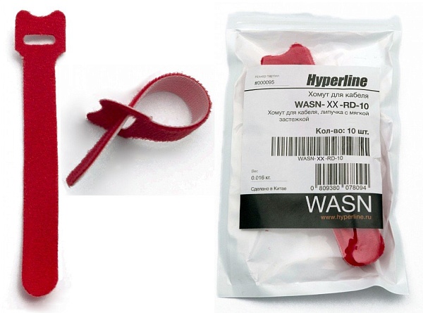 Хомут для кабеля, липучка с мягкой застежкой, 125x15 мм, красный (10 шт.)