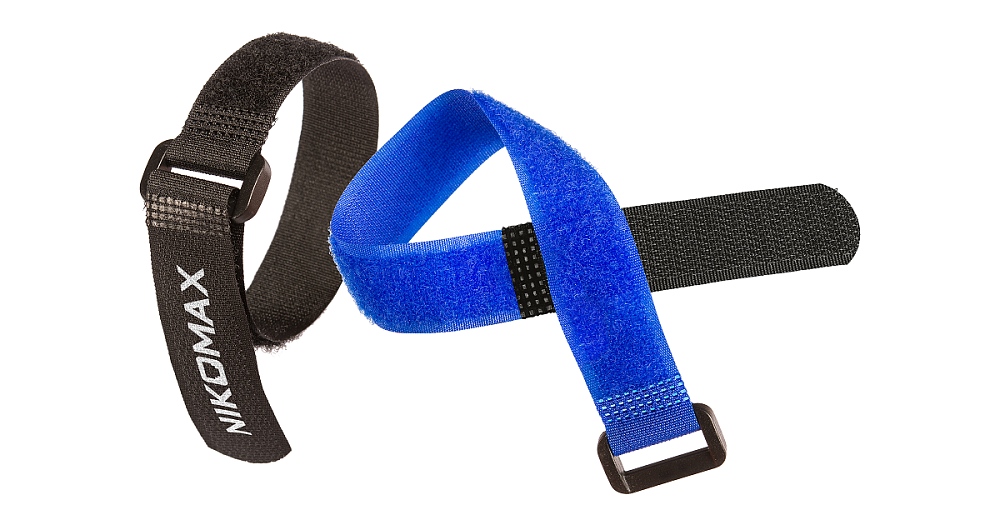 Стяжка-липучка NIKOMAX с жесткой пряжкой, 290х20мм, для пучков до 70мм, синяя, уп-ка 10шт.