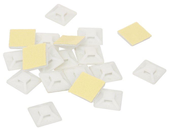 Основание для стяжек, самоклеящееся, 28х28мм, с двумя крепежными отверстиями 5.5 мм, белое, t-раб. 0...80°С, уп-ка 100шт.