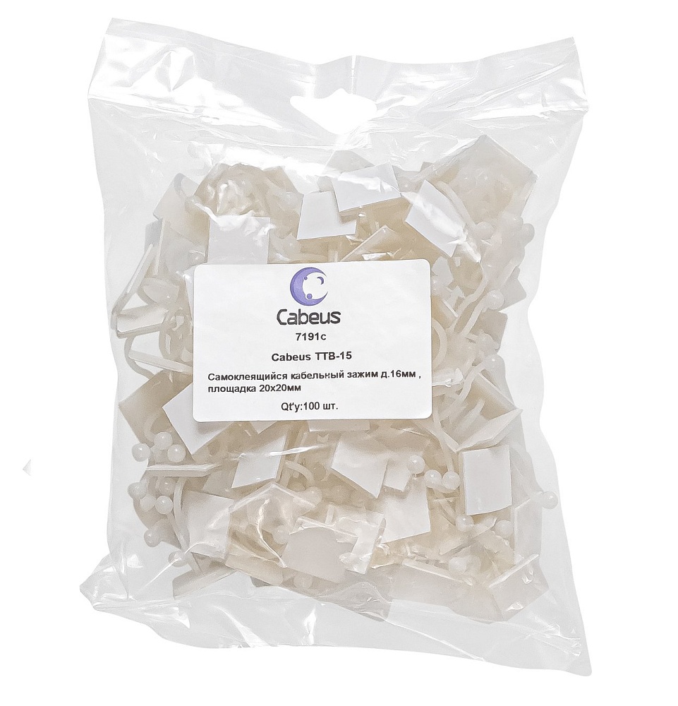 Самоклеящийся кабельный зажим д.16мм , площадка 20x20мм (100 шт)